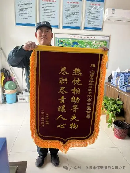 兩名學生在考試前到齊盛湖公園游玩,一時疏忽將手機遺失,而遺失的手機內保存有考試所需的所有信息及資料。情急之下,他們向安保項目部求助。得知情況后,項目部立即通過調取監控,調度隊員展開接力尋找,最終成功找到遺失的手機。兩名學生對項目部及安保隊員的熱忱相助和盡職盡責表示感謝,并贈送了一面寫有“熱忱相助尋失物,盡職盡責暖人心”的錦旗。